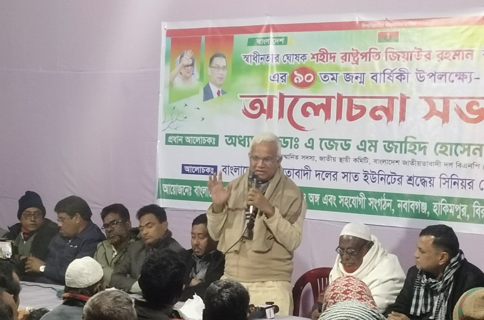 ডা: জাহিদের আয়োজনে নবাবগঞ্জ উপজেলার মতিহারায় বাসভবনের সামনে ১৯ জানুয়ারী রাতে আলোচনা সভায় সভাপতিত্ব করেন জেলা বিএনপির স-সভাপতি তরিকুল ইসলাম। বক্তব্য রাখেন জেলা বিএনপির সহ-সভাপতি আতিকুর রহমান রাজা ও তোসাদ্দেক হোসেন তোছা, সংসদীয় আসনে বিএনপি প্রার্থীর নির্বাচনী পরিচালনা কমিটির আহবায়ক আব্দুস সাত্তার মিলন, সদস্য সচিব ফেরদৌস রহমান, বিরামপুর উপজেলা বিএনপির সভাপতি মিয়া শফিকুল ইসলাম মামুন, সাধারন সম্পাদক মঞ্জুর এলাহী রুবেল চৌধূরী, সাবেক সেক্রেটারী কমর সেলিম, পৌর বিএনপির সাধারন সম্পাদক রেজাউল করিম রেজু ৭ ইউনিটের বিএনপি ও অংগ- সহযোগি নেতৃবৃন্দ।