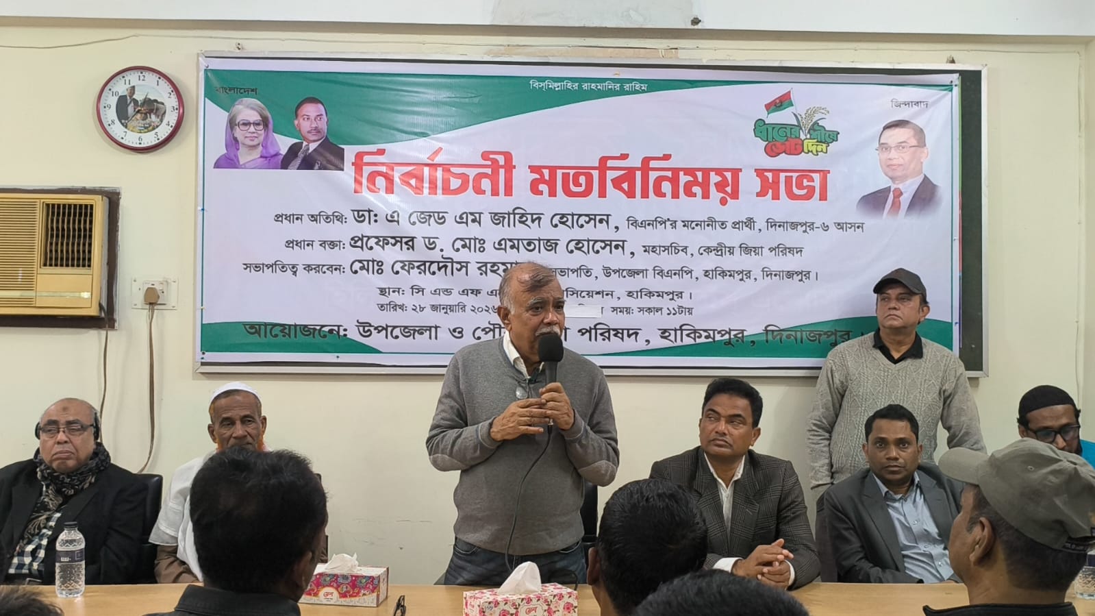 হাকিমপুর উপজেলা জিয়া পরিষদের আহবায়ক অতীন কুমার মানি (অভয়) এর সভাপতিত্বে মত বিনিময় সভায় বিশেষ অতিথির বক্তব্য রাখেন হাকিমপুর উপজেলা বিএনপির সভাপতি ফেরদৌস রহমান।