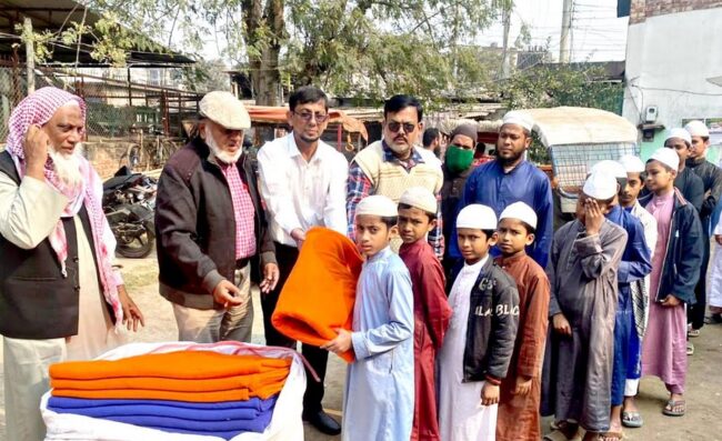 দিনাজপুর শহরের দুটি মাদ্রাসায় এতিম শিশুদের মাঝে সাবেক ছাত্রনেতা ও চেম্বারের পরিচালক পিয়াল আহমেদ এর ব্যক্তিগত উদ্যোগে শীতবস্ত্র বিতরণ