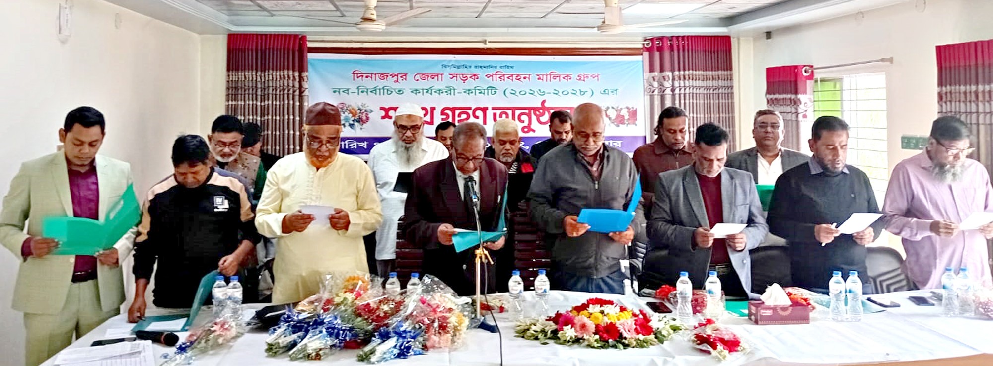 দিনাজপুর জেলা সড়ক পরিবহন মালিক গ্রুপ এর নব-নির্বাচিত কায্যকরি কমিটির শপথ গ্রহণ অনুষ্ঠিত